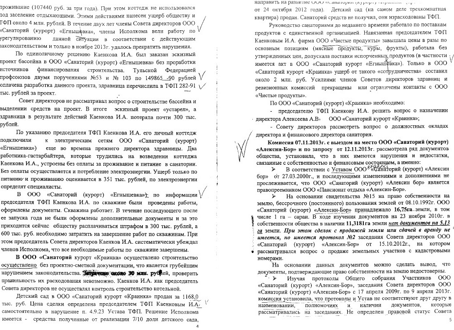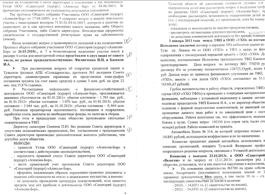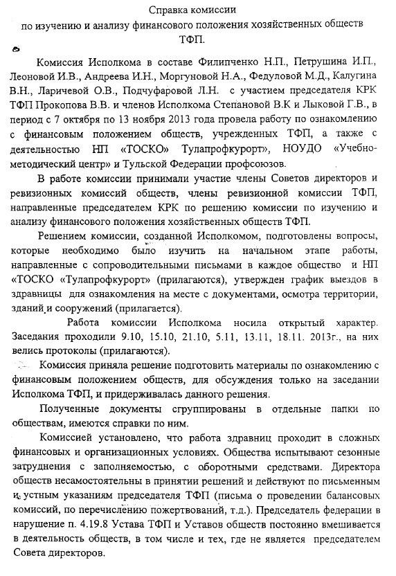 Я работал в ревизионной комиссии! Эта справка полная липа. Каенков приглашали сам комиссию из Москвы и все эти факты полная чушь!!! Каенков единственный председатель в России , кто сохранил профсоюзные здравницы и это легко проверить!!! Ни в одной области нет такого имущества как в Туле . Многим не нравилось. , что Каенков поддерживает политику губернатора, да он и не скрывал это. А такие как Андреев, Леонова , Ларичева председатели профкомов ведут политику против губернатора. Сейчас у нас в профсоюзах полная анархия, собираються продавать имущество. Кто против него шел, теперь готов все за 3 копейки продать. Вот и вся история . Честь и совесть имею !!!!
