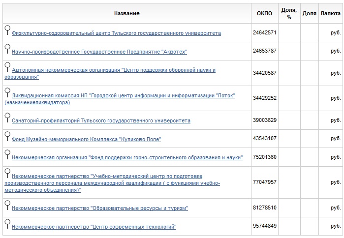 По нашей информации, которая подкрепилась документально, Тульский государственный университет является приютом для учредителей и соучредителей ряда фирм, которые работают, в том числе, по линии ТулГу.
