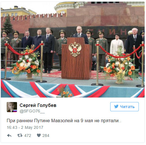 Опасения тогда оправдались: Мавзолей на параде Победы был тщательно задраен.