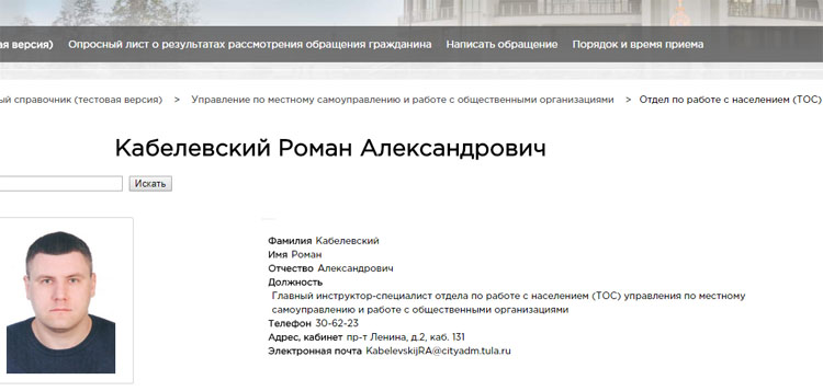 Но можно зайти и на сайт тульской городской администрации. На страничку Управления по местному самоуправлению и работе с общественными организациями. И здесь легко обнаружить двойника уважаемого Романа Александровича.