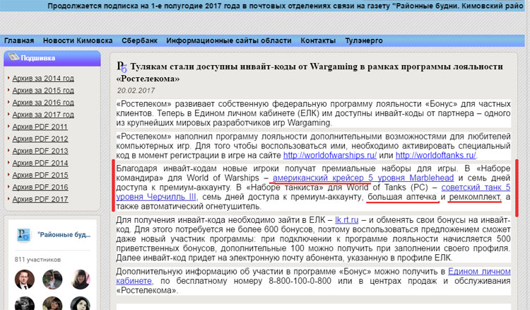 «Благодаря инвайт-кодам новые игроки получат премиальные наборы для игры. В «Наборе командира» для World of Warships – американский крейсер 5 уровня Marblehead и семь дней доступа к премиум-аккаунту. В «Наборе танкиста» для World of Tanks (PC) – советский танк 5 уровня Черчилль III, семь дней доступа к премиум-аккаунту, большая аптечка и ремкомплект, а также автоматический огнетушитель».