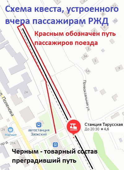 Вчера на станции «Тарусская» какие-то умные люди перегородили товарным поездом проход к платформе, к которой должен был подойти экспресс в Москву.