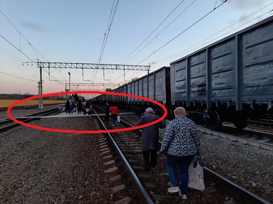 «Пассажирам-дачникам с детьми и стариками пришлось обходить состав около километра по щебёнке и шпалам» -льготников отсекают.