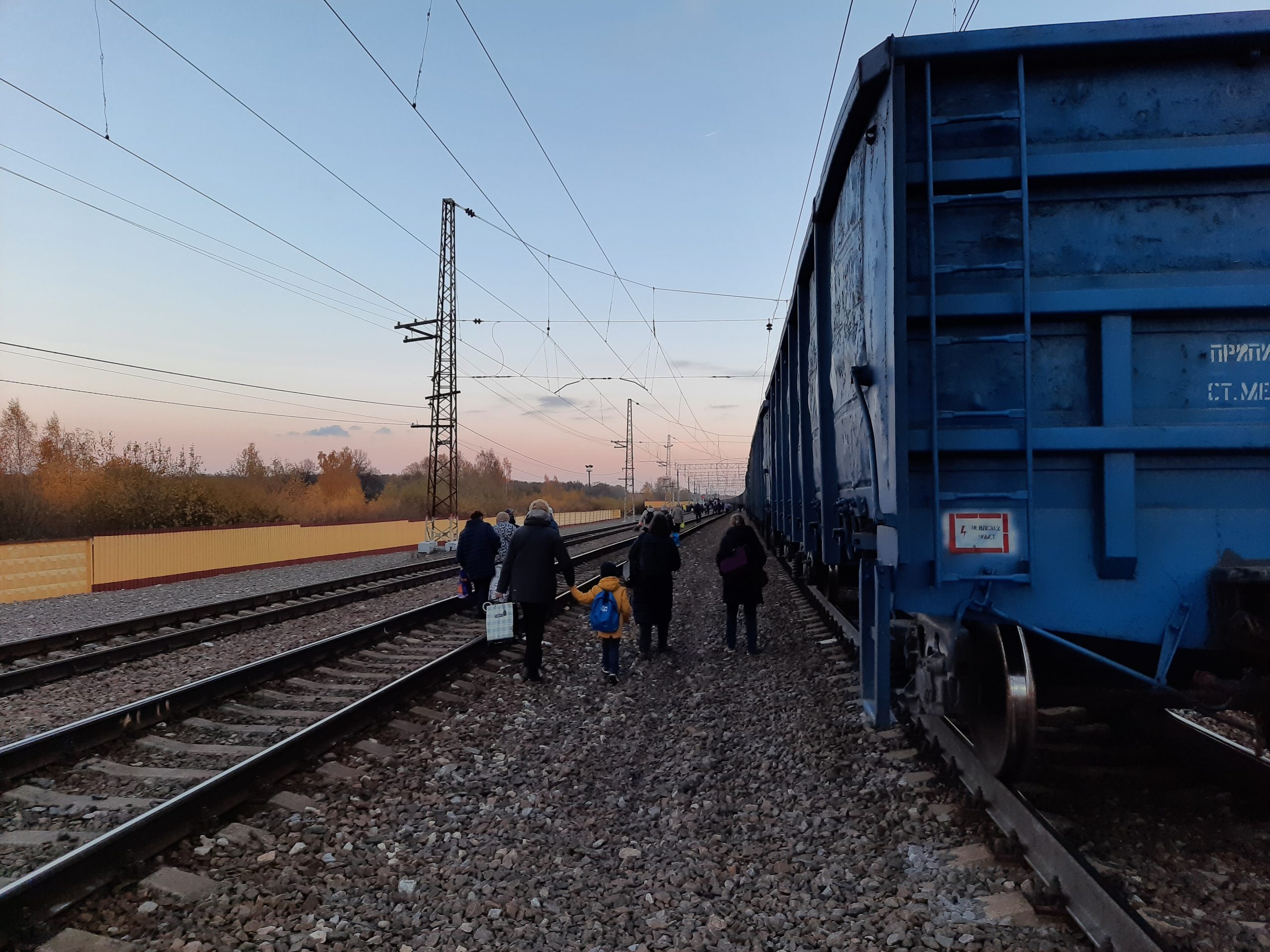 Пассажирам-дачникам с детьми и стариками пришлось обходить состав около километра по щебёнке и шпалам.