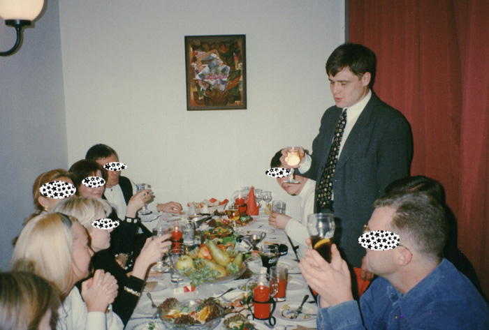 Но ещё недавно Владимир Сергеевич, очевидно, не верил в Деда Мороза и в праздники занимался вовсе не массовой раздачей сюрпризов детворе. Благодаря фотографиям, присланным одним из наших читателей, мы можем уверенно сказать, что господин Груздев любит говорить тосты. И неважно, находится он в обществе хозяев заводов, газет, пароходов…