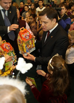 Говорят, в жизни каждого мужчины есть три возраста. Когда он верит в Деда Мороза, когда он не верит в Деда Мороза, и года он сам — Дед Мороз. Сейчас тульский губернатор вступил в самый что ни на есть дедморозовский период, чему свидетельство в том числе и фото слева наших коллег из еженедельника «Слобода». К слову, не волнуйтесь за подарок. Как бы ни заносил над ним руки министр образования и культуры Денис Бычков, коробка будет вручена ребёнку.