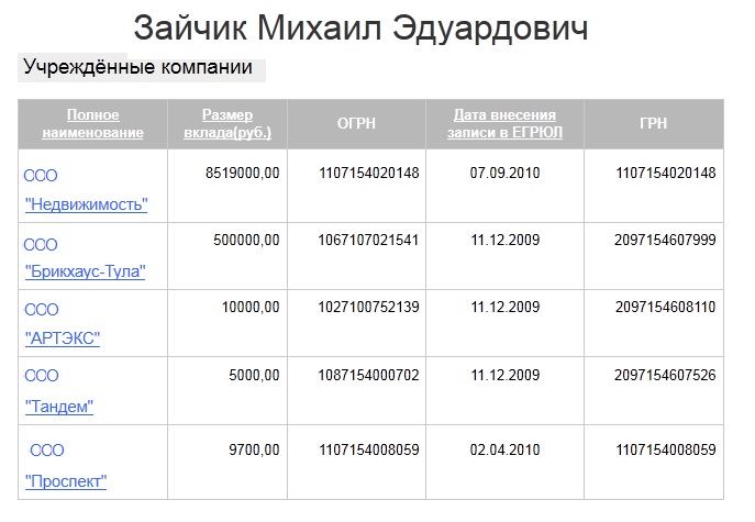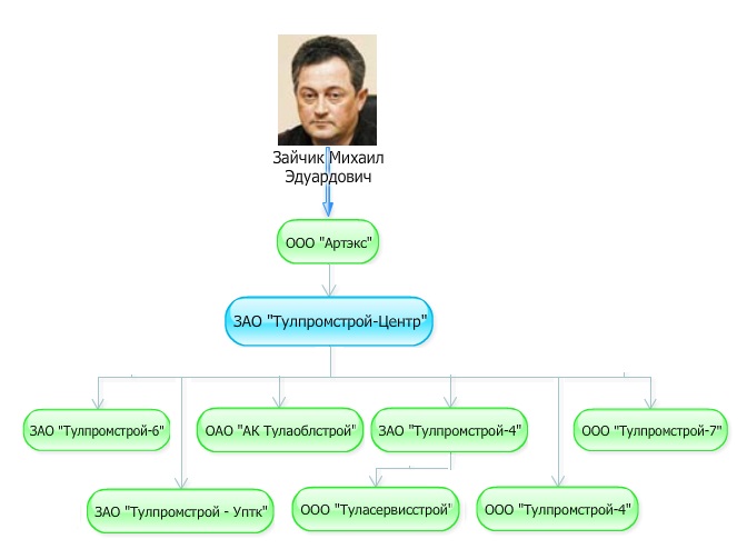 Куда смотрит губернатор, мы не знаем. Но нынешний глава администрации Олег Самылин пытался предотвратить строительство, которое затеяло ЗАО “Тулпромстрой – Центр” (гендиректор Михаил Зайчик, сфера его бизнеса приведена на схеме). Однако фирма добилась своего через арбитражный суд.