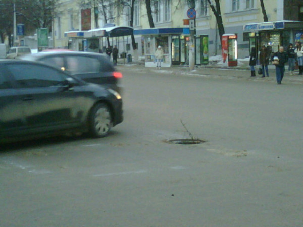 а на Слободском снимки который спустя три часа зделан…Просто понимаете, проспект Ленина в Туле он такой неоживленный, что куски люка могут там вечно неподвижно лежать. ага. правда-правда