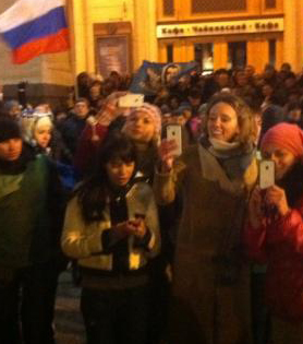 На фото: Нашистки Юля Городничева и Кристина Потупчик (в центре) демонстрируют свои айфоны и делают фото в стиле «самострел».