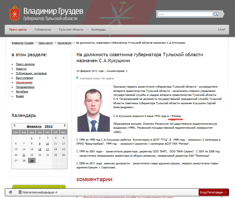 PRяники Вы что решили всем напомнить, что можете за определённую сумму организовать PR акцию всем "обиженным"? Ведь по сути Ваша статейка не о назначение Сергея Кукушкина на должность, а о защите некоторых государственных чиновников, включая прокурора Олега Черныша. Чем Вас не устраивает вполне законное требование проверять чиновников? Почему Вы так встревожились предполагаемой проверкой Олега Черныша? Ведь фразой: "Рискнём предположить — прокурор региона "провинился" тем, что как человек давно работающий в Туле вольно или невольно контактирует с теми, у кого новая правительственная команда очень даже не против забрать кое-какие активы." Вы допускаете его нечистоплотность. Так пускай Генеральная прокуратура и проверит его ВОЛЬНЫЕ И НЕВОЛЬНЫЕ контакты. Правда лично у меня возникает вопрос, а невольные контакты — это как? Насиловали его что ли? Или силой взятку заставили взять? PRяники, просьба объясните пожалуйста.