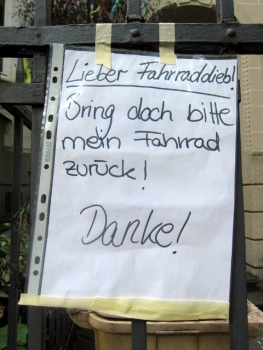 Объявление на заборе дома в одном из немецких городов: «Дорогой велосипедный вор! Верни, пожалуйста, мне мой велосипед! Спасибо.»