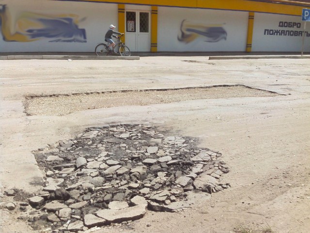 Я фигею — остатки асфальта покрыты утрамбованной калесами пылью и грязью — поверх ям — не стыдно такое иностранцам показывать