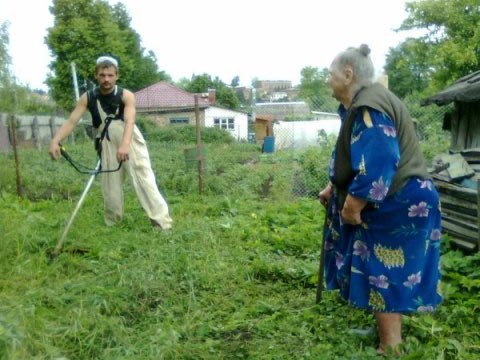 Депутат и накатал это письмено, бурьяна у нее отродясь не было возле дома, только одни одуванчики да мелкое разнотравье, которое время от времени нужно скашивать, как и у всех остальных людей, просто она по возрасту уже не может, поэтому косят траву местные мужички. Кстати фото сделано у Софьи Григорьевны в огороде, где видимо она попросила заодно скосить, видя как "Гражданская солидарность" орудает садовой техникой.