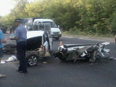 Вчера проезжали мимо, у первой машины ДПС не было повреждений, кроме царапины на заднем бампере слева, а вот у машины губернатора капот был просто всмятку. Половина семерки стояла на эвакуаторе, а вторая ( задняя с багажником) валялась рядом и крыша ее была вмята практически на уровень капота. Трудно представить что от столкновения лоб в лоб машину может разрезать напополам. У Приоры был стесан только бок. Так что не верь глазам своим))))