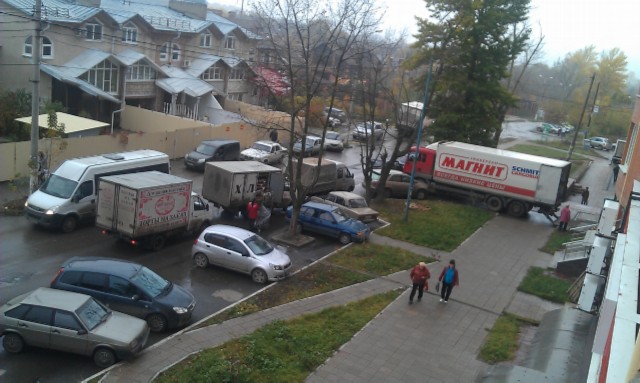 Господа городские чиновники! Посмотрите внимательно на фото — большегрузная машина заехала на тротуар! по газону!!!!! А милиция что, слепая???? 20 таких заездов и хана тротуару , а от газона останутся только колдобины. Господи, ну где мы живем?????? Кто-нибудь остановит это хамство и беспредел????
