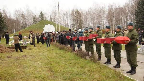 Церемония перезахоронения останков 22 воинов-красноармейцев, найденных поисковиками в Тульской области и на территории Украины, состоялась на воинском мемориале «Курган Славы» в городе Белеве , сообщил РИА Новости представитель Тульского областного молодежного поискового центра «Искатель»