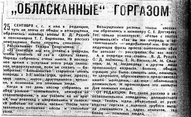 В редакцию пришло письмо с вырезкой из “Белевской правды” от 7 октября 1997 года, в которой  рассказывается об отношении Сергея Дегтярева к белевским пенсионерам. Сейчас бы эта публикация, наверняка,  привлекала бы внимание  прокуратуры.