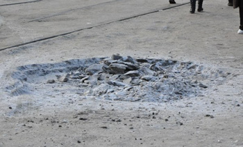 Технологию литого асфальта использовали Берёза с Могильниковым несколько лет назад в дождь и снег,оказалось,по конечному результату-полная туфта.Горячий пар быстро охлаждает слой, прилежащий к восстанавливаемой поверности, и кроме того фомирует полость.По весне следы остаются только в виде ям и убытков.