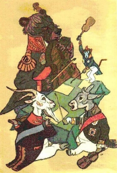Господин Г. ,плача, по телефону господину П.: Вот список украденных вещей, украли: Три магнитофона, три кинокамеры заграничных, три портсигара отечественных, куртка замшевая… три куртки.