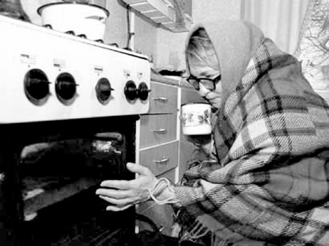 В квартире температура по утрам 13 градусов. Днем на 1-2 градуса побольше. На себя днем одеваем все что можно натянуть. Горячим чаем и горячими щами не надолго можно согреться. По ночам вобще пи..ц полный. Сплю з-й день в вязаном шерстяном пальто, а дети — в толстенных шерсятных свитерах, спортивных штанах и шерстяных носках.