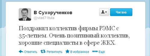 Но всё это в прошлом, а на носу — выборы в областную думу, на состав которой у Владимира Груздева виды совсем другие, чем у многих местных «профессиональных политиков». В одиночку тут не повоюешь. С тем же торгашом предпринимателем Филатовым всё ясно, нужны союзники посерьёзнее. И вот Владислав Сухорученков оказывает недвусмысленные знаки внимания бывшей главе Тулы, ещё более бывшей активистке ЛДПР Алисе Толкачёвой. «Хорошие специалисты с сфере ЖКХ», — рекламирует он толкачёвскую фирму РЭМС в своём твиттере.