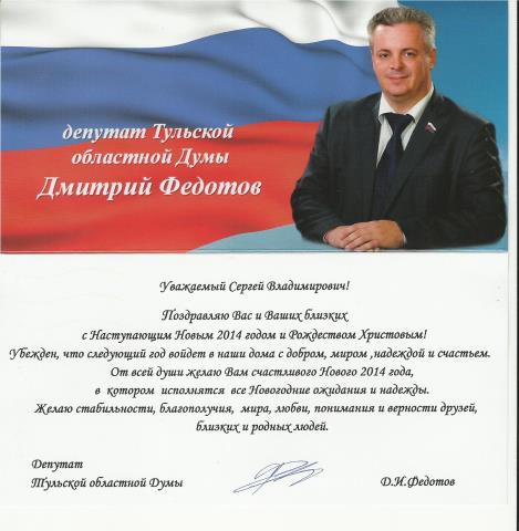 Вам, нашему д о р о г о м у депутату и руководителю всех других дорогих депутатов Тулы, наверное, непросто было найти время в вашем напряжённом графике, чтобы так красиво сфотографироваться и сочинить нам – Вашим дорогим избирателям такое красивое послание со множеством пожеланий. Как только подумаем, сколько вам пришлось потратить на дорогущих нынче фотографов и дизайнеров, на тех, кто помогал вам сочинить такие добрые слова и красочное оформление такой большой открытки, так начинаем переживать, что нанесли вы наверное своему бюджету (запятую поставьте сами) большой урон. А сколько ж еще пришлось заплатить вам за почтовые услуги, чтобы донести ваши депутатские наказы нам вашим дорогим избирателям в каждый городской почтовый ящик, а их более 150 тысяч в Вашем городе! Ваша широкая мэрская душа помогла нам еще раз убедиться в том, что избрали вы себя депутатом и мэром не зря!