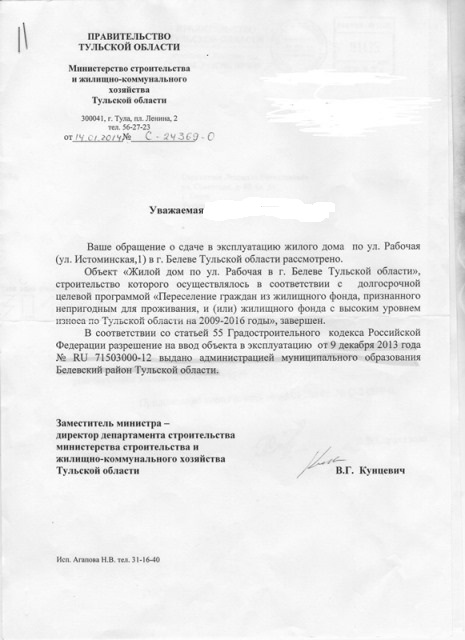 Но уже 9 декабря, как сообщил директор департамента строительства и ЖКХ Василий Кунцевич, разрешение на ввод объекта в эксплуатацию было подписано администрацией Белевского района .