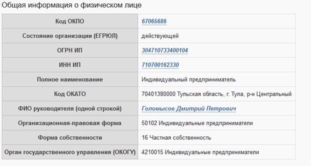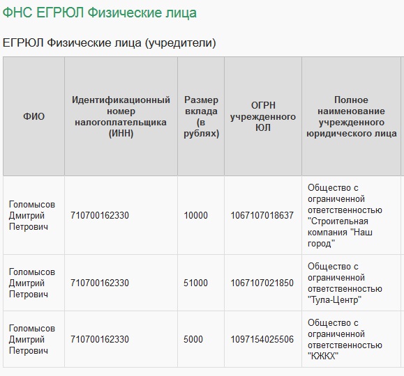 Выписка по фирме ВНИЗУ, а ВВЕРХУ ИНН физлица ГОломысова
