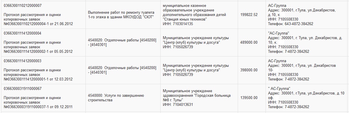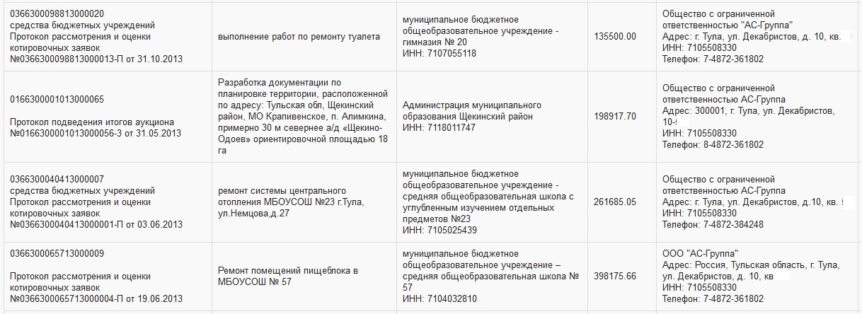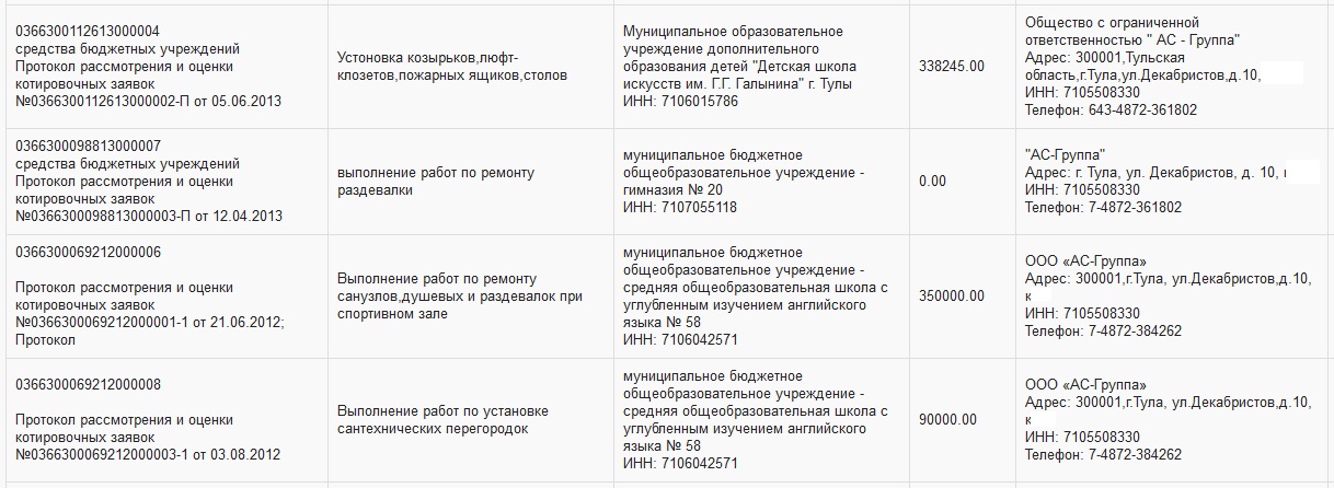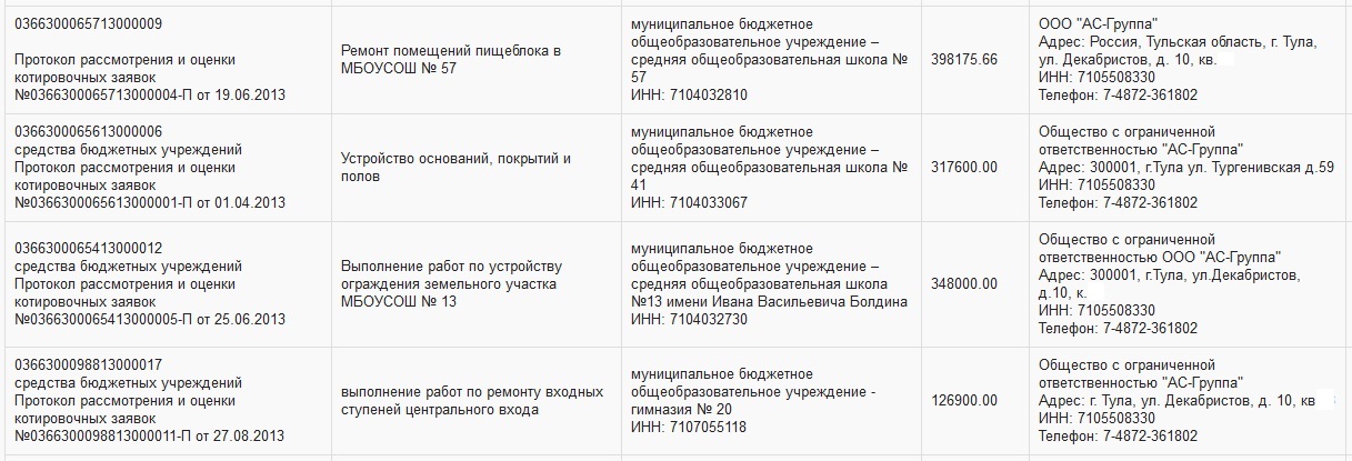 1.Очевидна родственная связь подрядчика т заинтересованного чиновника, имеющего влияние непосредственно на заказчиков- руководителей образовательных учреждений