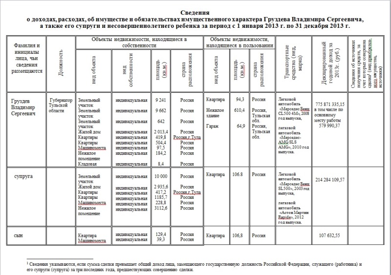 Вчера на сайте правительства области появилась декларация о доходах и имуществе тульского губернатора Владимира Груздева и его семьи за 2013 год.
