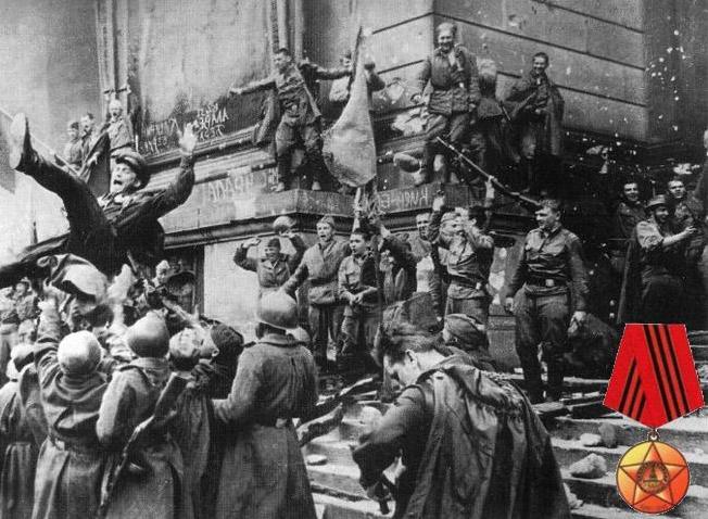 Колодка у этого изображения от медали "За взятие Берлина", а сама медаль похожа на Орден Славы, но Орден Славы был пятиконечной звездой без круга, и с другой колодкой.