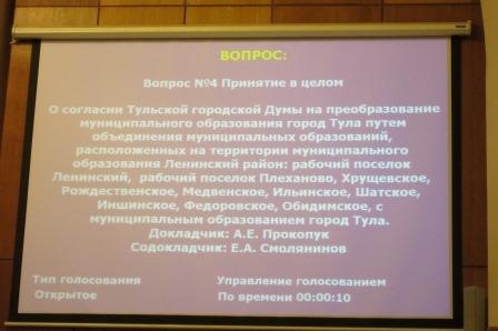 На 76-м заседании Тульской городской думы четвертого созыва принято решение о самороспуске в связи с присоединением  Ленинского района.  Все 34 депутата, присутствующие в  зале заседаний, проголосовали за это историческое решение, которое, впрочем, нам предстоит осознать лишь спустя 50, а то и 100 лет. Подлинным героем этого события, однако, оказались не столько депутаты, сколько губернатор  Тульской области Владимир Груздев. Оспорить этот факт вряд ли бы кто решился даже на заседании Тульской городской думы, которая всегда отличалась бОльшим свободомыслием, в отличие от областных  коллег.