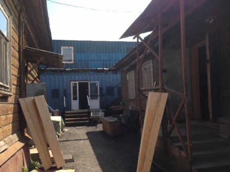 Во дворе дома стоят большие контейнеры, где продают ритуальные принадлежности: гробы, веночки, корзиночки и прочий скорбный товар.
