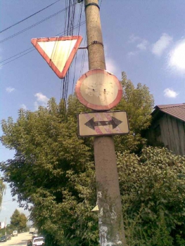 Этому знаку много лет. Он вообще-то нужен, запрещал поворот направо грузовому. Там легковушки вперемешку с прохожими. А грузовая пока еще никого не смела. То есть, петух не кулюнул. Адрес:Мясново,перекресток 18 Проезда и Тихмянова