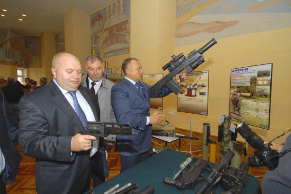 revolver_panchenkoК тульскому револьверу, который способен пробить броню, примеряется представитель в Совете Федерации от Тульской облдумы Игорь Панченко. Справа от него депутат Госдумы Дмитрий Савельев присматривается к штурмовому автомату АШ-12.          Фото: © Военный дневник Игоря КОРОТЧЕНКО