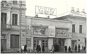 Дело в том, что в нашей школе не было большого зала, поэтому собрания учащихся проводили или в Доме учителя (дом купца Платонова), или в Клубе КГБ (дом купца Ларионова), находившемся недалеко, в Садовом переулке. А спектакли нам доводилось смотреть в Доме просвещения, не менее красивом. В здании клуба КГБ был огромный зрительный зал, куда мы поднимались по широкой лестнице В зимние каникулы там устраивали для нас Детский утренник с вручением гостинцев и показывали детские фильмы по абонементу на 10 сеансов (на 8 утра), который выдавали в школе за 1 рубль.