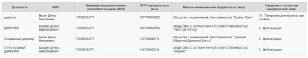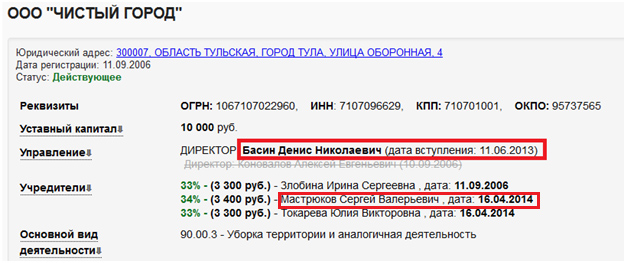 А вот и интересы господина Басина в ЖКХ. ООО «Чистый город» — известная многим тулякам компания.
