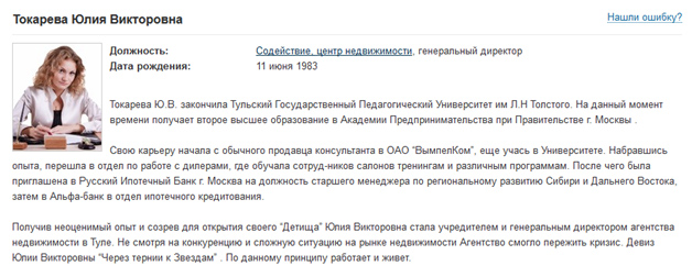 http://www.realsearch.ru/person/%D1%82%D0%BE%D0%BA%D0%B0%D1%80%D0%B5%D0%B2%D0%B0_%D1%8E%D0%BB%D0%B8%D1%8F_%D0%B2%D0%B8%D0%BA%D1%82%D0%BE%D1%80%D0%BE%D0%B2%D0%BD%D0%B0/