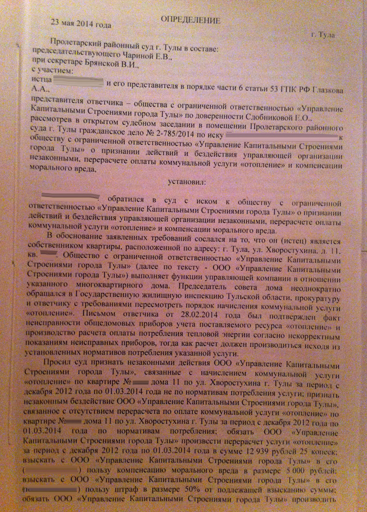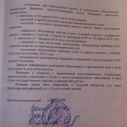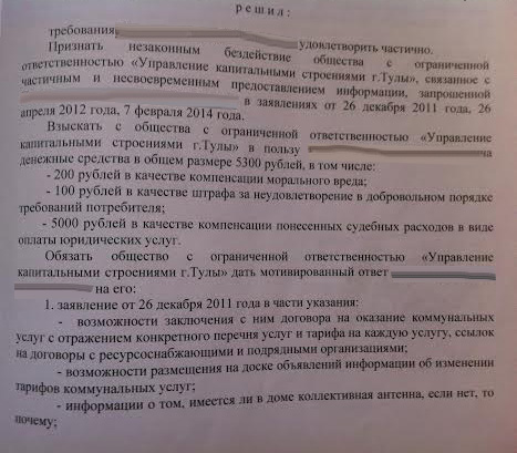 Это одно из полученных нами судебных решений по сокрытию информации от жильцов.