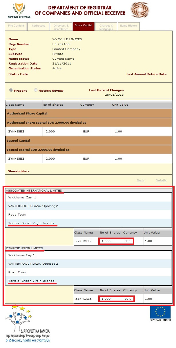 А вот и выписка из реестра предприятий Кипра, подтверждающая наши слова: