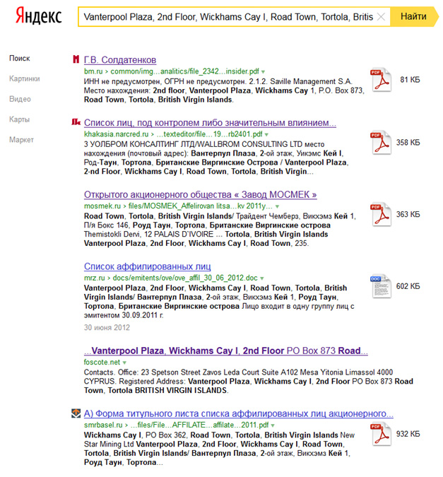 off-05yandexКак уже говорилось ранее, на Британских Виргинских островах доступ к данным из реестров об акционерах и директорах со стороны третьих лиц практически невозможен. Указанная информация может быть открыта только по решению местного суда, что сводит шансы, на ее получение из местных органов власти практически к нулю.