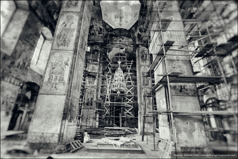 А сегодня с утра решил их загнать в ч/б и выложить. Получился конечно полнейший тлен, но как мне кажется… в таком виде они очень хорошо говорят о внутреннем состоянии и истории собора.