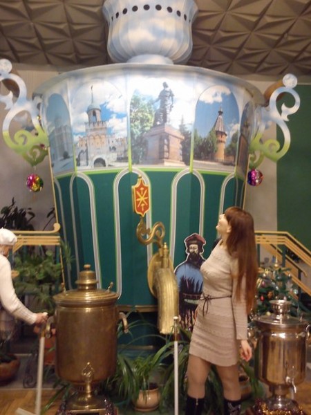 Далее термос нам нашептал: «Девочки, вам пора по самоварам.» Да, путь лежал в Музей самоваров. Первой неожиданностью для меня было то, что музей занимает аж два этажа! Казалось бы, ну самовары, на фига им два этажа? Но когда я эти два этажа осмотрела, было жаль, что их не четыре! Самовары могут быт очень красивыми и разными. Я не уставала ими изумляться. Тут я впервые увидела: самовар высотой от пола до потолка; самовар с напёрсток; самовар из сахара; из бересты; и тот самый, который есть у меня дома)) Вопрос, который крутился у меня постоянно в голове,:»Как она это сделали???»