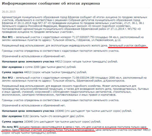 Время от времени поглядываю на сайте МО город Ефремов информацию о земельных участках. На днях был опубликован результат аукциона о продаже земельного участка неожиданной геометрии с классификацией «Для индивидуальной жилой застройки».