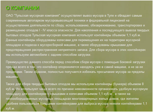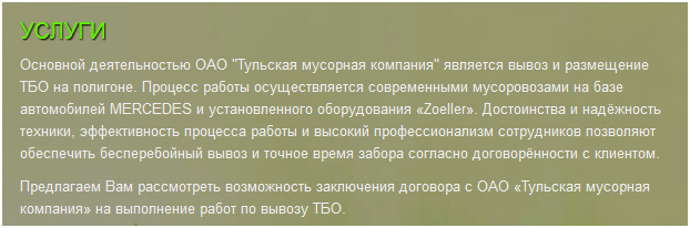 Мы уже рассказывали про ОАО «Тульская мусорная компания», а теперь попробуем изучить её более подробно: