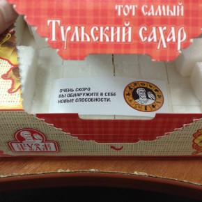 Это к тому, что открыв пачку тульского рафинада, мы обнаружили внутри следующее послание от производителя: