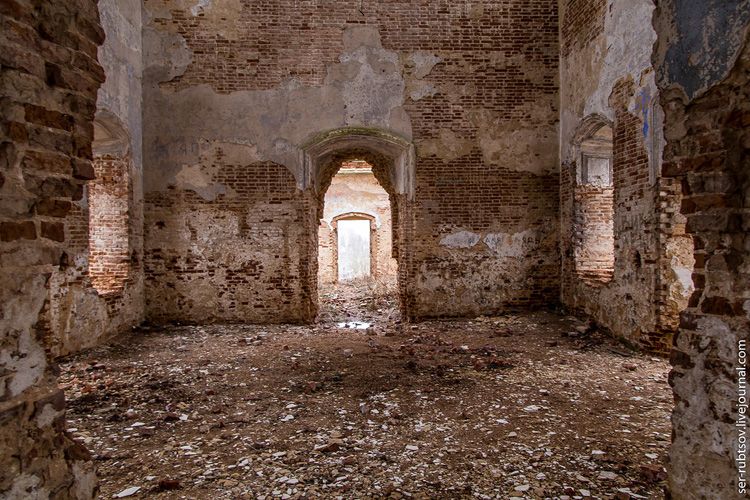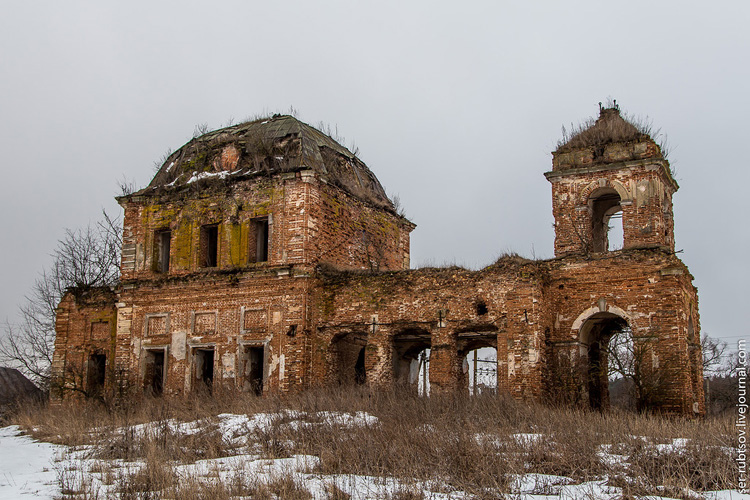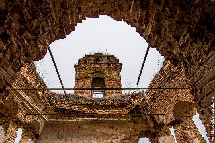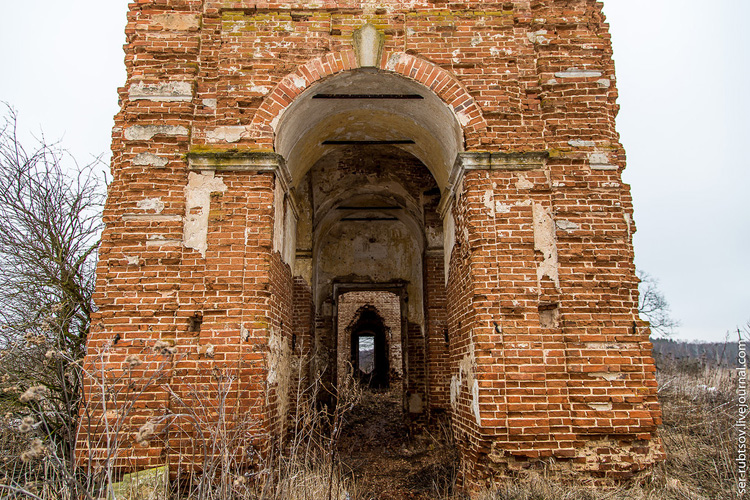 Целью моего визита оказался более поздний период, который можно исследовать без лопаты, имея только привычный фотоаппарат. Меня интересовала заброшенная Церковь Воскресения Христова, построенная помещицей Нарышкиной М.М. в конце 18-го века:
