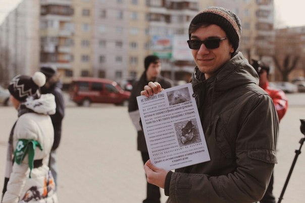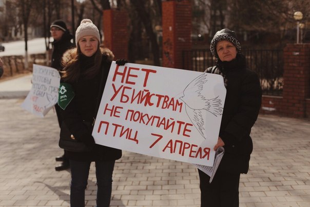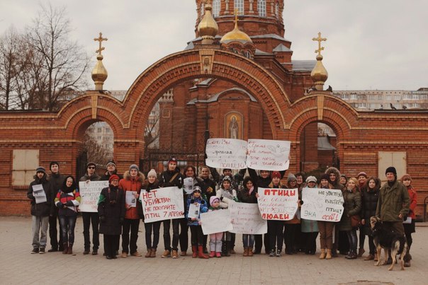 29 марта движение «ЭКА» провело пикет в защиту птиц . Место- храм Сергия Радонежского на Пузакова.