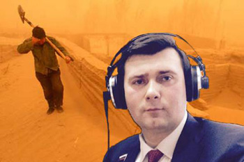Олег Лебедев на фоне песчаной бури. Использовано фото: kprf.ru