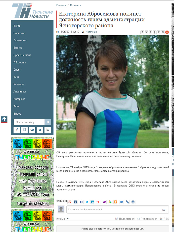 А вот и продолжение от всё тех же «Тульских новостей», из которого следует, что госпожа Абросимова всё-таки вляпалась в нехорошую ситуацию.